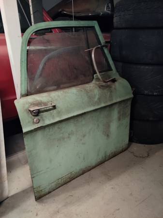 This is the passenger side door from a 1968 dodge d100 pickup. It should fit any swept line pickup from 1960 to 71 including d200 and d300.