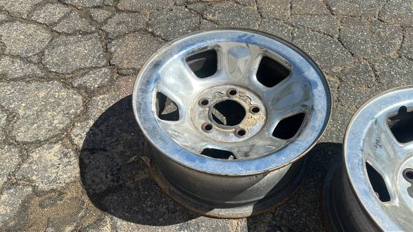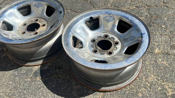 Two Original 15-Inch Chrome Astro Van Steel Wheels 5 on 5 fits Chevy - $100 (Montebello)