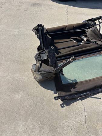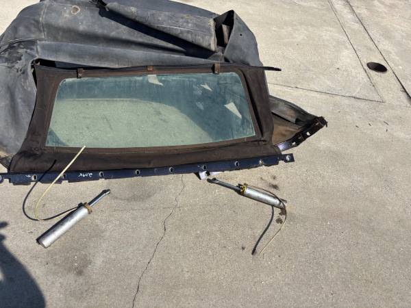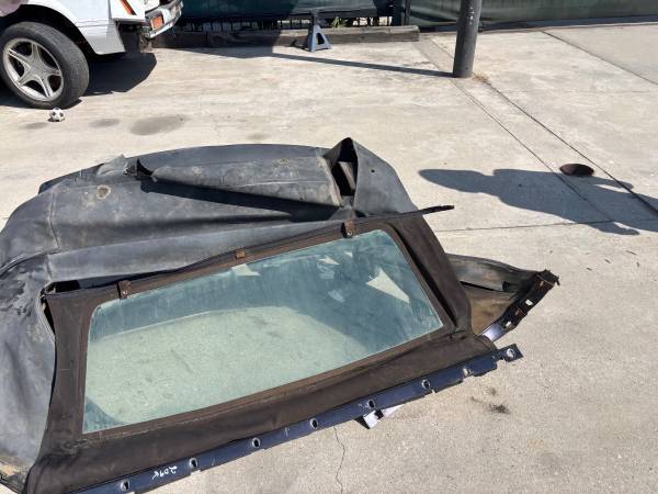 80es-90es Mustang complete convertible top assembly with good back window very stable frame latch assy,tack moldings,pump,cylinders,of course need a new top fabric,