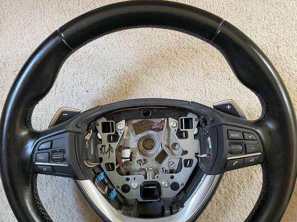 2011-2016 BMW 535i 528i 550i Steering Wheel with Airbag OEM. It's in good working condition and has no damage or scratches. It will fit on the following BMW: