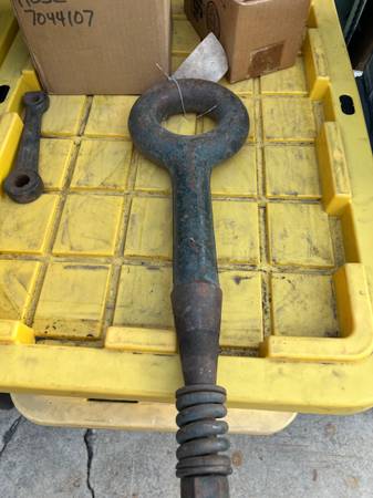 Draw bars take off $50 ea. Lunette eye casting $150. Drain plugs $20 ea. Safety chains $25. Ea. M100 axle take off $275. M416 axle take off $200. Spring shackle mounts. $50 ea. Power cable. $150. Landing leg. $90.