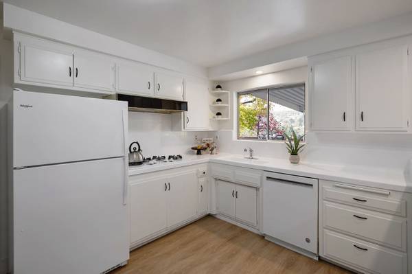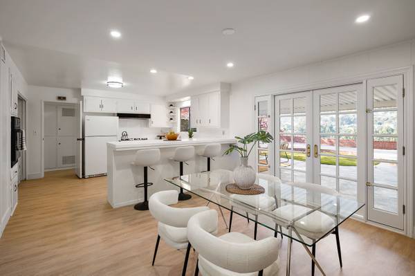 Secluded in the peaceful hills of Glendale bordering La Cañada Flintridge and tucked away toward the end of a quiet cul-de-sac, this one-owner home is on the market for the first time since it was built over 60 years ago. Serene living surrounded by scenic views, this charming pocket is calling you home. An inviting curb appeal is on display with freshly laid grass and a professionally landscaped design framing the brick-paver driveway that leads you to a graceful double-door entry. A bright and airy interior thoughtfully updated with new luxury vinyl plank flooring and modern touches throughout welcomes you. To the right of the entry, the spacious living room is anchored by a classic fireplace and mantle, a perfect focal point for cozy evenings or quiet moments at home. Oversized windows allow sunlight to pour in, creating a warm and comfortable setting that blends effortlessly into the adjoining dining area. The kitchen is a wonderful balance of functionality and comfort, featuring a tiled eat-at bar countertop, recessed LED lighting, a four-burner gas cooktop, a wall oven, a dishwasher, and a convenient in-kitchen laundry area. French doors extend the living space outdoors, leading to a spacious patio where morning coffee or evening gatherings can be enjoyed beneath the covered portion or in the open-air section surrounded by expansive hillside and neighborhood views to the north. Down the hallway are three well-proportioned bedrooms, each offering new carpeting and generous closet space. The full hallway bathroom includes a tub and shower combination and a single-sink vanity, while the primary suite is a tranquil retreat of its own. The suite features a large window framing lush backyard views, a walk-in closet, and an ensuite bath with a tiled shower enclosure and an oversized single-sink vanity. Outdoors, the backyard provides the perfect canvas for relaxation or entertaining, whether hosting intimate dinners, gardening, or simply taking in the peace of the setting. This home captures the beauty of hillside living while being conveniently close to local attractions like Chevy Chase Country Club, shopping, and dining, offering the perfect blend of comfort while still maintaining a wonderful sense of seclusion and calm. Peaceful, private, and filled with natural light, this Glendale home is ready to welcome its next chapter.