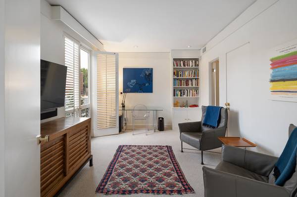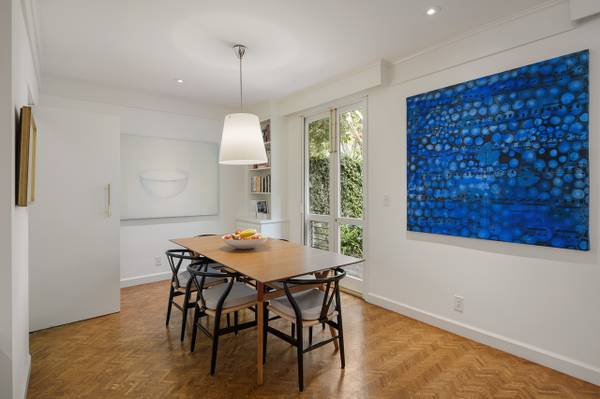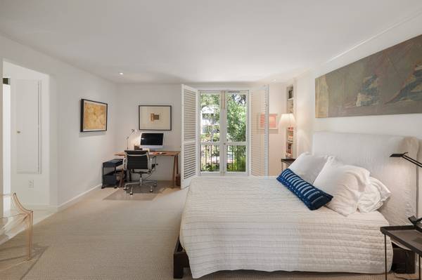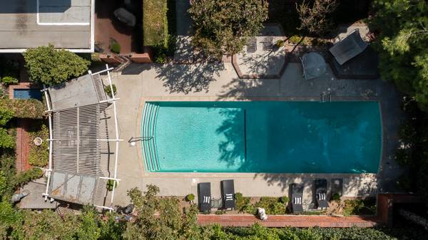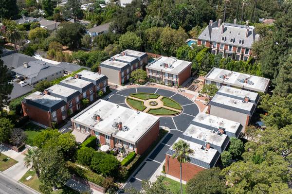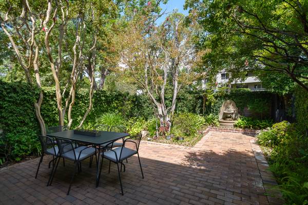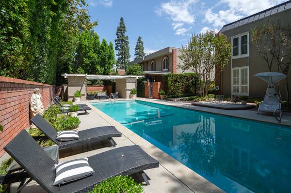 Sophisticated living within Pasadena’s desirable Craven’s Court along famed Millionaire’s Row, this exceptional end-unit residence boasts one of the most coveted floor plans in the enclave, offering both scale and privacy with only one shared wall. From the moment you arrive, the frosted glass double-door entry welcomes natural light into a refined interior where herringbone hardwood floors, recessed lighting, and thoughtful details set the tone. Just off the entry, a versatile bedroom or office space with a closet and an adjacent guest bath provides function and flexibility. The main level flows seamlessly with a stylish wet bar connecting to the gourmet galley kitchen, featuring stone countertops, custom tile backsplash, a Zephyr range hood, JennAir refrigerator, and the kitchen’s centerpiece, a Bertazzoni 5-burner cooktop and oven, regarded as the “Ferrari” of ranges imported from Italy. A swinging door opens to the dining area, continuing into the spacious living room with crown molding, a fireplace, and direct access to a tranquil private patio with lush greenery and the soothing sound of a fountain. Upstairs, both bedrooms are private suites. The guest suite includes French doors with louvered shutters opening to dual balconies overlooking the patio, generous closet space, and a stone-topped vanity in the ensuite. Across the landing, the primary suite offers crown molding, custom built-ins, abundant closet space, and a spa-like bath with a stone vanity, a glass-enclosed shower, and luxurious finishes. Additional conveniences include a laundry closet, attic storage, and hidden retractable screens throughout. Residents of Craven’s Court enjoy a gated pool, lushly landscaped grounds, and a circular driveway that evokes timeless Pasadena elegance. Combining the feel of a private retreat with proximity to the heart of Pasadena, this rare end-unit offers refined living along one of the most storied boulevards in Southern California.