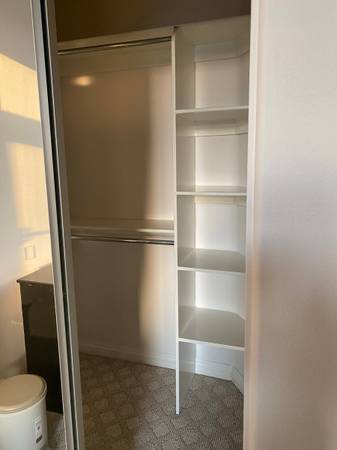 - Carpet floor, light blocking curtains, small walk-in closet
