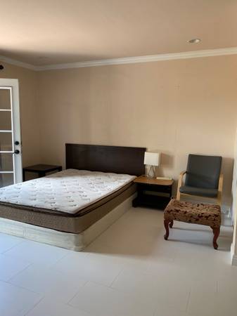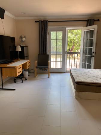 Single family house on Blandford Drive, Rowland Heights. Beautiful Master suite has its own separate entrance. Furnished with a queen bed. Double French doors open to the backyard. Your own shower. Convenient location. New white tile floor, very spacious Master Bedroom. Available 10/29/2025. Price includes utilities, wifi, and laundry on site. It is like your own unit at the back of the house.