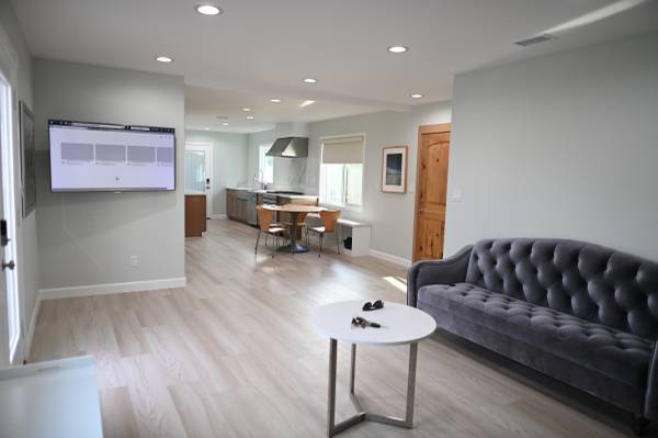 The common areas of the house: Living Room, Dining Room, Gym and Kitchen