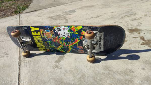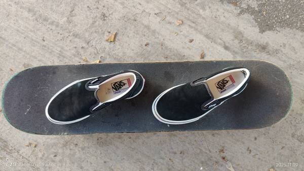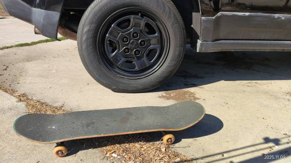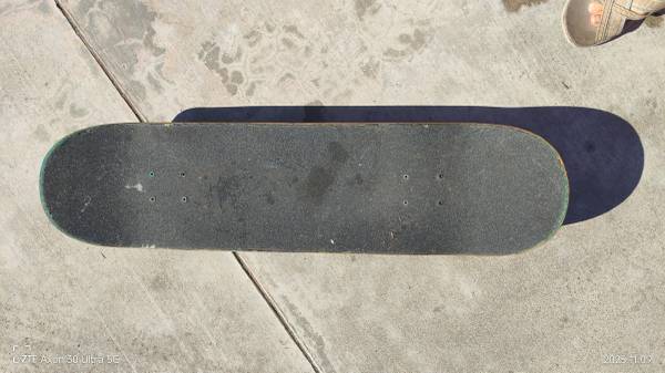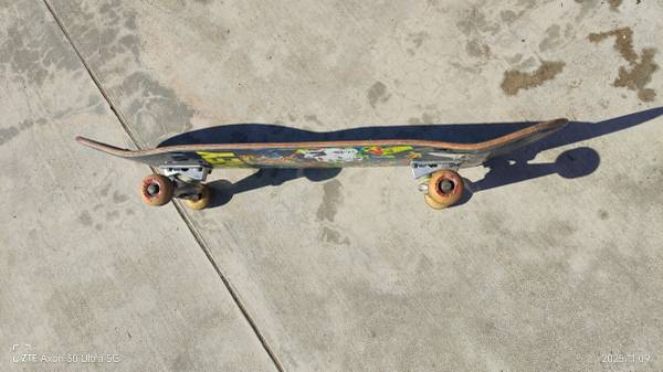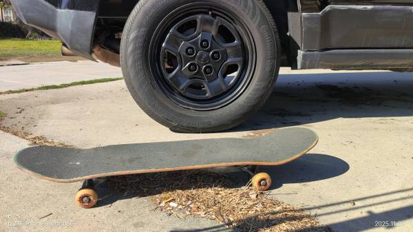 For size, please see the 2 photos: 1 photo with a 16-inch wheel, and 1 photo with a pair of size 9 Skateboard shoes on it. (The shoes are also for sale, please see my other ads.)
