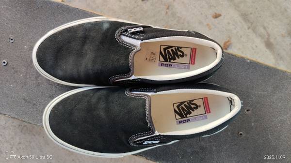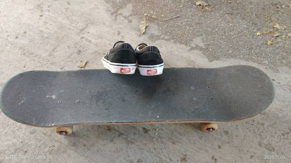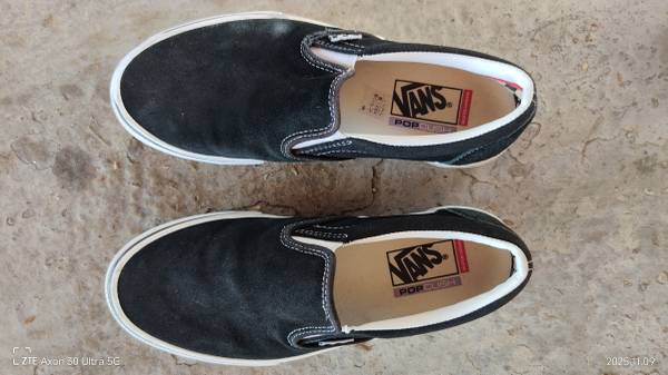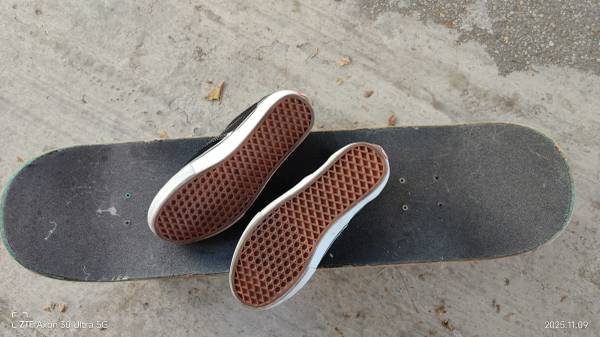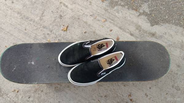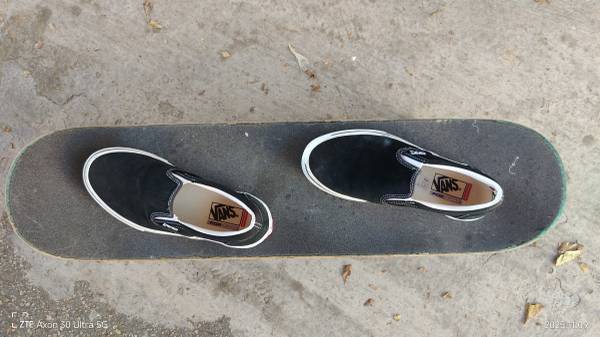 Skateboard shoes / Sneakers Brand: VANS "OFF THE WALL " SKATEBOARDING Black exterior and white sole almost new, please see the clean thread on the bottom of the shoes The Skateboard is also for...