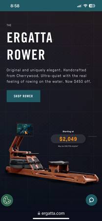 The Ergatta Rower is a smart rowing machine with fun, game-based workout to keep you motivated. It’s in excellent condition and feels just like new. Great full body workout that engages major muscle groups, including arms, legs, core and back.