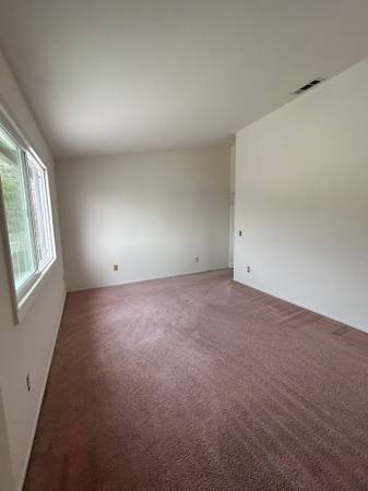 Room has a double closet, and a window with a mountain and water view. It is upstairs, shared bathroom has a double sink, under sink storage, and a shower/tub. House has air conditioning. Room is unfurnished. Everyone has shared access/use of the backyard patio, living room, dining room, pantry, full kitchen, and washer and dryer. Kitchen has dishwasher, gas stove, fridge, sink with garbage disposal, and plenty of cupboard space for personal kitchen items/food. Backyard patio has a water view of a reservoir and the nearby mountains. There is no street parking allowed by the street's HOA, there are two parking spaces inside a garage and two parking spaces in the driveway and all renters must make an agreement with each other who will park where.