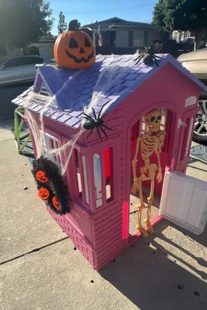 Little Tyke Playhouse (Halloween) Prop Pink and purple house (Only). Makes a great Halloween prop. I have shown some ideas , your creativity is endless, also makes a great Christmas Prop Glendora