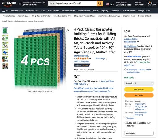 For sale is a new 4-Pack Lego Baseplates. They measure 10in X 10in and come in green, sand, blue and grey colors. Item retails for $8 but get it for $5 🚫 low offers 🚫 trades