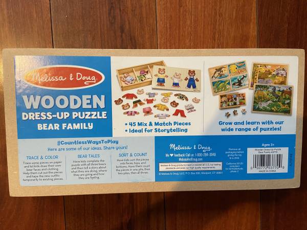 Melissa & Doug Bear Family Dress-Up Puzzle, rarely played because it was relative simple to my kid.