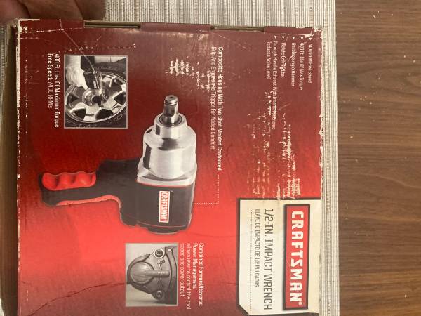 Craftsman model 16882 1/2” inch air impact wrench. Original box with manual. Used twice on small ATV wheels. Clean and ready for work. Available now