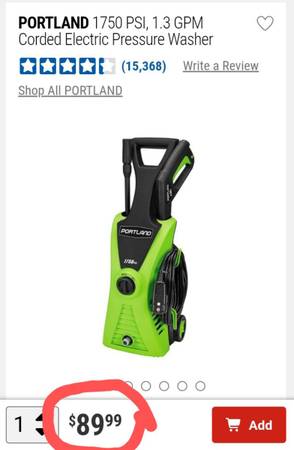 Pressure Washer 1750 PSI Portland brand, Harbor Freight Good working condition $30 Price is Firm Ad will be removed when sold, so it's Still Available Public place meetup, by appointment, for pickup.