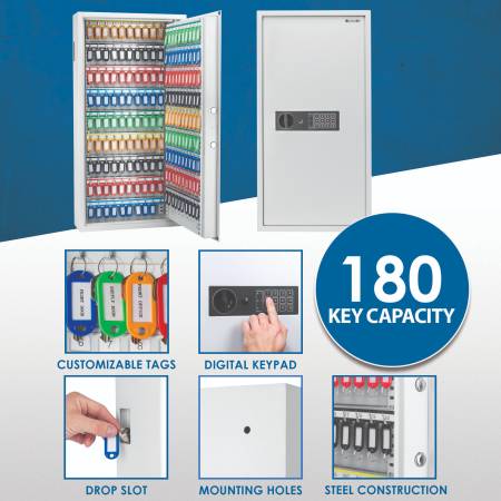 Keep your keys organized and secure with the Barska Digital Wall Key Safe, featuring a keypad entry and key return slot for added convenience. Perfect for businesses or anyone needing to manage a large number of keys. Save over $250!