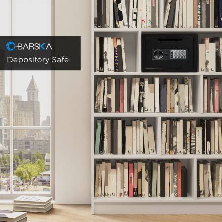 Refurbished BARSKA depository safe, ideal for cash storage in businesses. Fully functional with minor cosmetic imperfections (touched up with paint). Sold as-is, no returns or warranty.