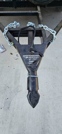 This has a 2" ball and flat 4 wiring plug. Bill of sale. I do not have any paperwork on this trailer.