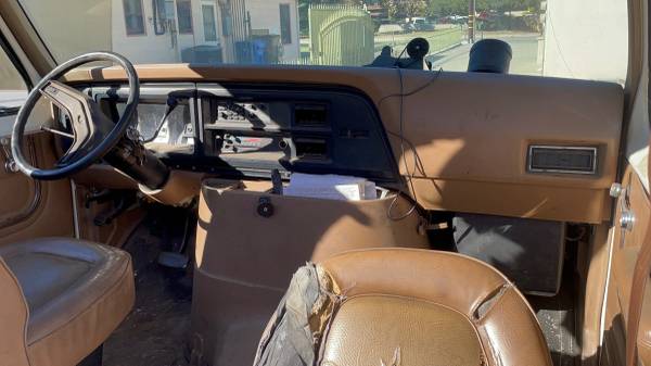Available for sale are the remaining parts from a deconstructed 1989 Ford E-350 box van, with the engine, transmission, box, and fuel system already sold. Still available is the heavy-duty frame/chassis, the complete rear end, and the full set of six dually wheels with actually pretty good tires on them. The front suspension features disc brakes and is a desirable swap for many older F-350 and classic Ford pickup truck projects. Body parts like the doors, fenders, hood, and grill are in decent shape, and various interior parts like the entire dash, console, and inside hood components are also available. Pricing is negotiable based on the individual part, but the chassis, suspension, body components, and the full set of six wheels/tires are all ready for purchase.