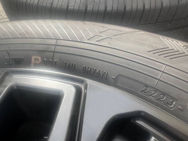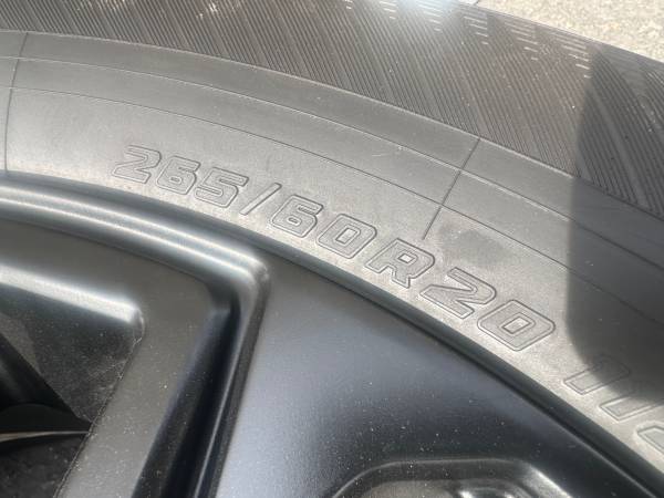 The tires have 99% tread left, and the DOT date is from 2023. You can still see the casting nubs in the rubber. They are 265/60r20 Yokohama Geolander tires.