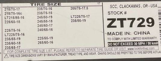 New SSC ZT729 Super Z Cars Pickups and SUV's Tire Traction Cables - $65 (Arcadia)