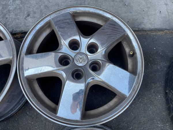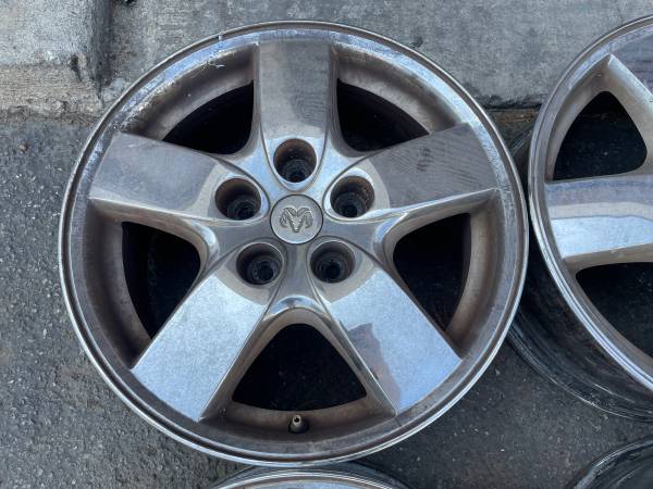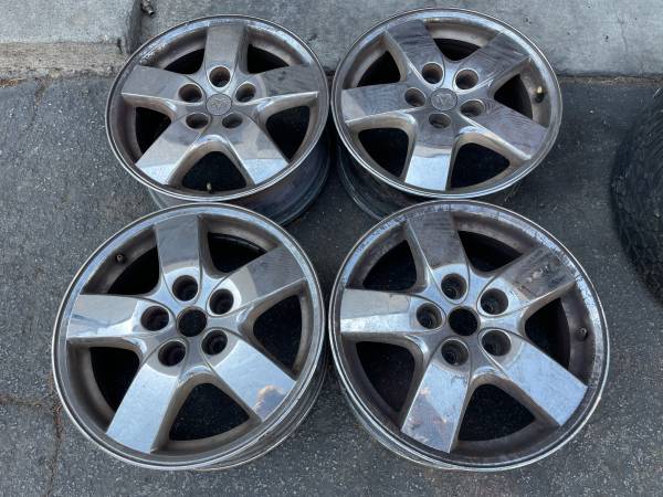 This is a set of four chromed aluminum 16x6.5 inch rims originally from a 2003 through 2007 dodge caravan. The rims have a 5 on 4.5 inch lug pattern. They are originally from a dodge minivan, but they will fit Plymouth voyager, Chrysler town and country, and most other front wheel drive vehicles with a 5 on 4.5 lug pattern. The rims have some small scratches, but still look good. If you clean them up the chrome will shine.