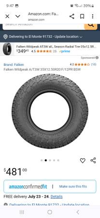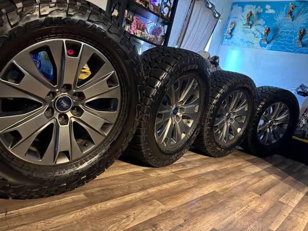 20" WHEELS WITH FALKEN WILDPEAK A/T 3 W 35×12.50R20LT TIRES CAME OFF MY 2010 FORD F150CREW CAB I UPGRADED TO 24" RIMS THIS ARE GREAT WHEELS AS YOU CAN SEE IN THE PICS PLENTY OF LIFE LEFT ON THEM ALL I'M ASKING IS 900 AS A BONUS I'M THROWING THE SPACERS AND LUG-NUTS AS WELL