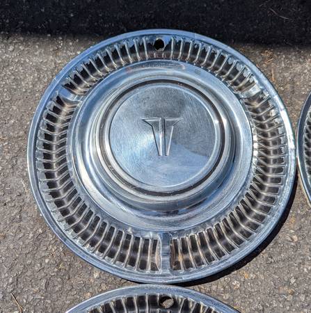 These are four Stock hubcaps original from a 1962 Oldsmobile. They are in great condition.