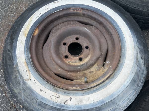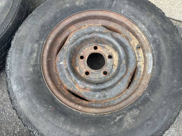 15 inch Chevy or GMC truck or van rims and old tires 5 on 5 steelies - $250 (Montebello)