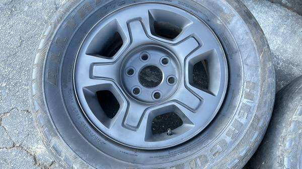 This is a set of four 17x7.5 inch aluminum rims from a Chevy Avalanche. The lug pattern is 6 on 5.5 inches they fit on Chevy Tahoe, Suburban or Silverado, they also fit on GMC Yukon Sierra, and a few vans such as the Savanna and Chevy Express. The rims are in good condition they are spray painted black and look good no bends or cracks. The tires are old and should be changed.