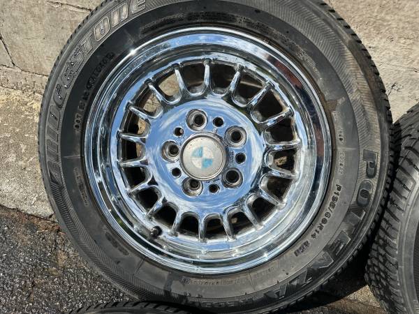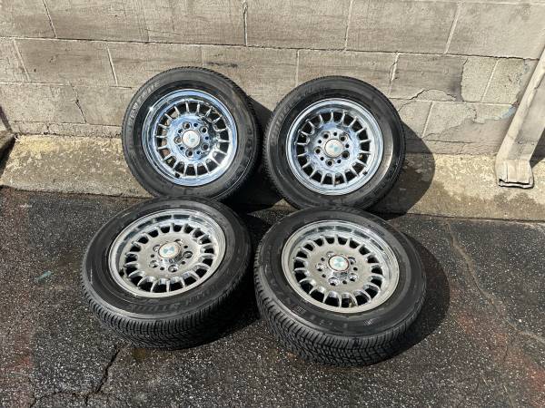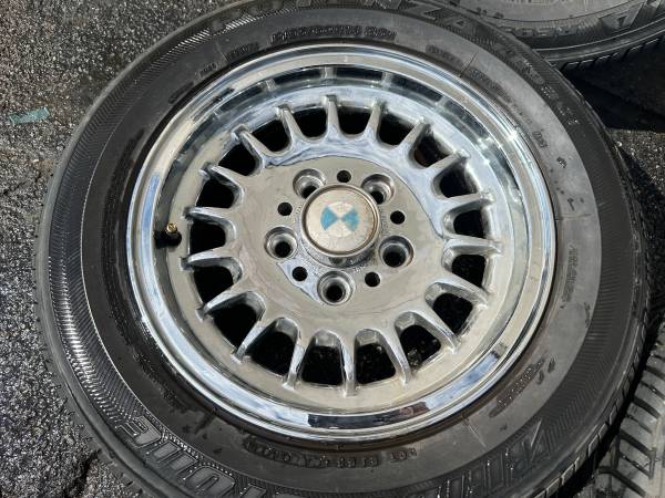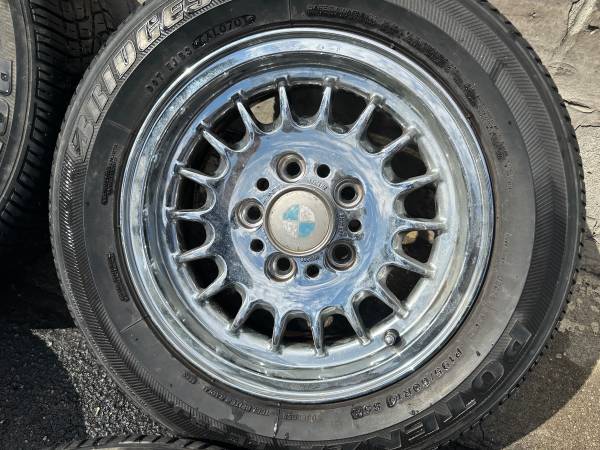 BMW e28 chrome 14 inch wheels and old tires. 5 on 120mm - $100 (Montebello)