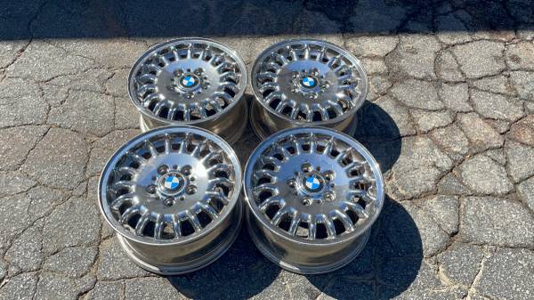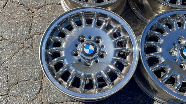 BMW 3 series 15 inch chrome wheels 5 on 120mm- - $250 (Montebello)