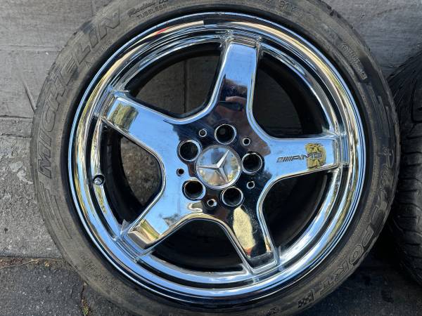 Chrome Mercedes AMG staggered 17 inch aluminum wheels with old tires - $1,000 (Montebello)
