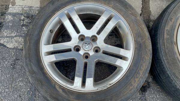 This is a set of four 18x7.5 -inch factory aluminum wheels from a Dodge Charger or Challenger The lug pattern is 5 on 115mm. This is also going to fit on Dodge Magnum or Chrysler 300 cars. All four rims are in good working condition with no bends or cracks no structural damage on them anywhere. All the tires are bad and need to be replaced right away They don't hold air. Perfect for any daily driver commuter project, etc.