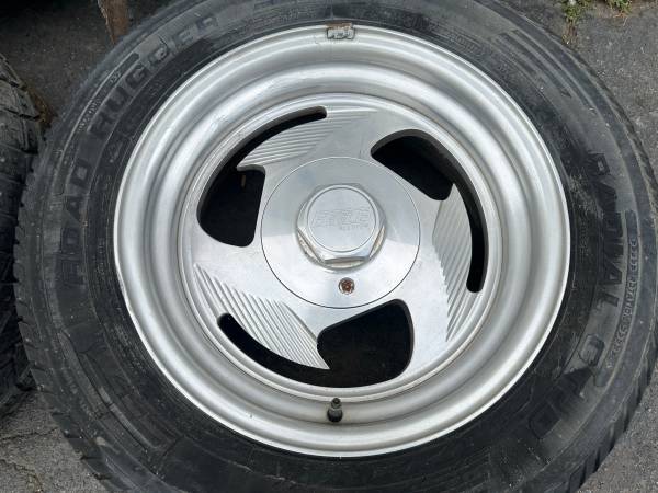 This is a set of four 16 inch billet style aluminum rims. They are in very good condition. They have a few small scratches, but there's no bends, cracks, or major damage. They have 2 lug patterns 5 on 5.5 and 5 on 5 inches. They will fit on almost all 5 lug classic full size trucks and a few big cars as well. They would fit on a Dodge Ram or Ford f100 or f150 truck or any chevy or gmc c10 or obs 1500 series pickup, Tahoe, or suburban. They also fit classic Cadillac cars and some full size caprice, Oldsmobile, Pontiac and buick cars. These are in good shape and could be polished to look new. They come with all four center caps, bolts, and the original tool, but one bolt is slightly different.