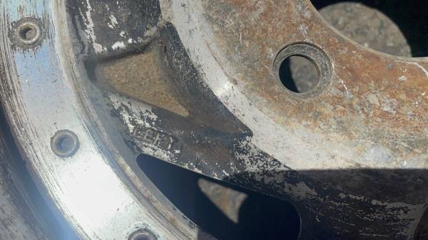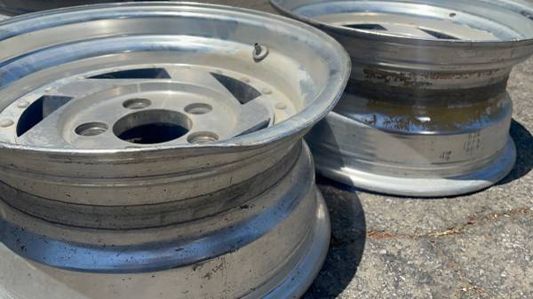 This is a pair of 14x7 inch original Enkei Hurricane two-piece directional aluminum wheels, made in Japan. Both are designated as left-side wheels. One rim has a bend on the lip but could hold air for temporary use, or its good center can be rebarreled. The other rim's barrel and center are both in good condition with minor scratches. The 5 on 120 millimeter lug pattern fits classic Chevy and GM cars (Oldsmobile, Buick, Pontiac), including Camaro, Firebird, Chevelle, Impala, and Malibu, plus some BMW and other imports. You could use different barrels to make them wider.