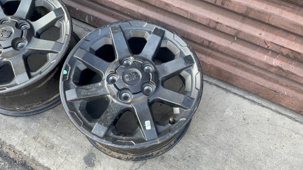 This is a set of four original factory aluminum wheels, measuring 15 by 7 inches with a large offset of ET 61.85, that came from a 2024 or 2025 Polaris Expedition off-road vehicle. The wheels feature the common 5 on 4.5 inch (or 5 on 114.3 millimeter) lug pattern, fitting any compatible off-road vehicle with the same bolt pattern. All four rims are in good structural condition, having no bends, cracks, or major damage, though they show a few little scratches from use. One of the four original center caps is missing from this set. Although their fitment on street vehicles is uncertain due to the backspacing, this is a clean, reliable set of wheels perfect for a Polaris or similar off-road application.