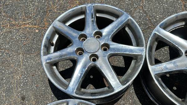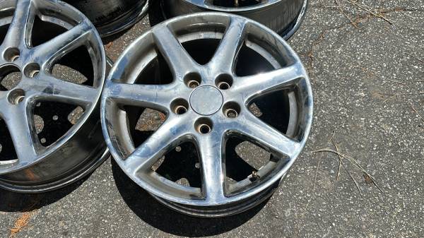 This is a set of four 16x 6.5 inch chromed aluminum wheels from a Honda Civic. The lug pattern is 5 on 4.5 inches (114.3mm) which fits on most 5 lug Honda Civic cars as well as other brands with this lug pattern. The wheels are in good condition no bends or cracks. They would be perfect for any daily driver , commuter or project vehicle.