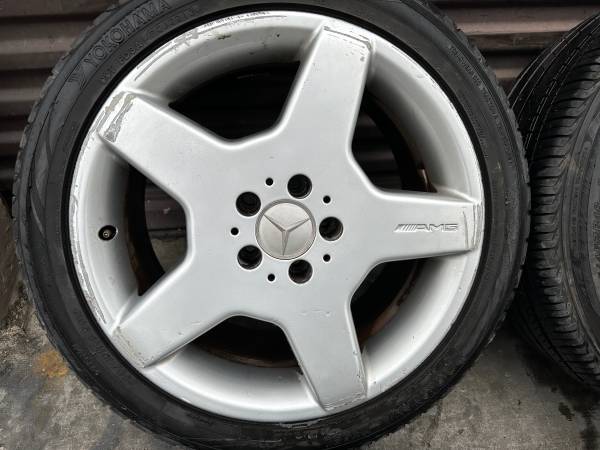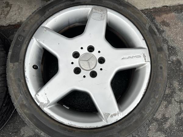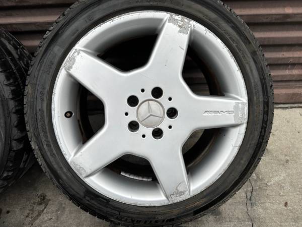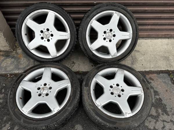 This is four staggered 18 inch wheels from an AMG mercedes-benz. They would be original for a CL class or S class car from 2003 through 2006. The lug pattern is 5 on 112mm which will fit most mercedes cars.