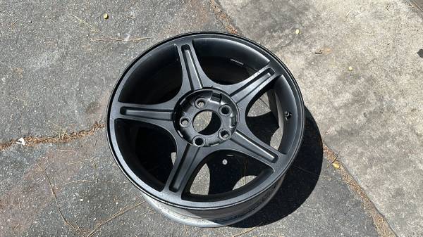 Mustang 17 inch aluminum wheel painted black. 5 on 4.5 lug - $60 (Montebello)