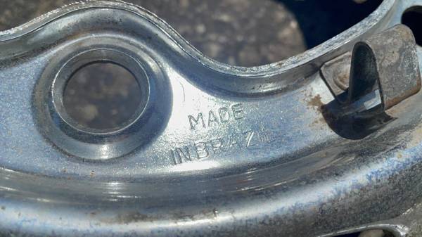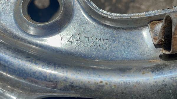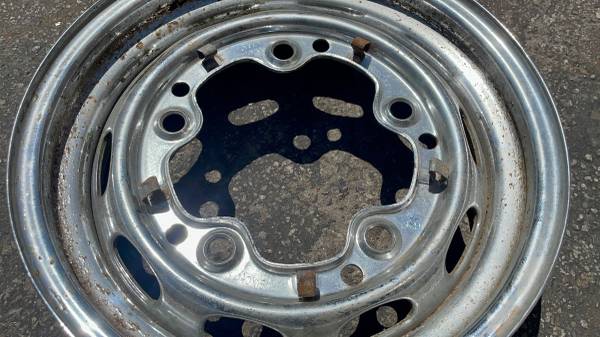 This is one 15x4.5 inch chrome steel wheel that came from a classic wide five Volkswagen car. The chrome is a little rough and starting to peel, but the rim is not bent or badly damaged and is in good working condition. The wheel is stamped "Made in Brazil" and has five intact clips to fit factory hubcaps. It should fit any five-lug Volkswagen from the 1960s or older. This wheel is perfect for a spare, a rat rod, or as a replacement for a damaged rim on a project or cruiser.
