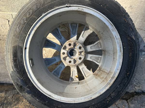 This is one stock aluminum rim originally from a 2019 through 2024 Chevy Impala. This is a 17x7.5 inch rim in good condition. There’s a few scratches but there are no bends or cracks.
