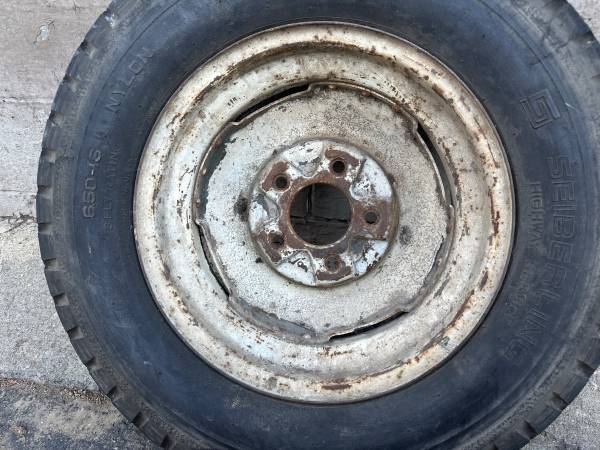 One ford f100 16 inch steel wheel with "innie" nubs for moon hubcap - $100 (Montebello)