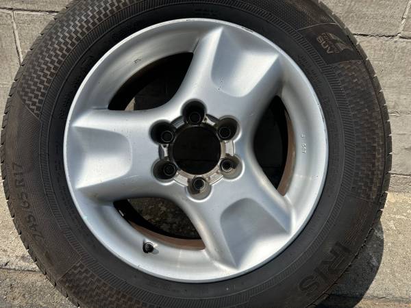 This is one 17x8 inch aluminum wheel originally from a 2001 through 2001 infinity QX4 suv. The lug pattern is 6 on 5.5 inches which should fit many 6 lug Nissan or Infiniti truck or SUVs. It’s a little dirty, but otherwise I’m good condition. This would be perfect as a spare or replacement of a damaged wheel.