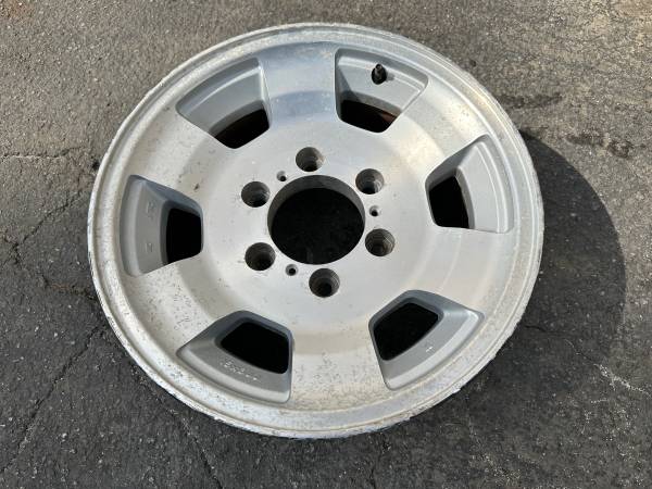This is a single Aluminum 15x6 inch wheel originally from a 91-97 Isuzu rodeo suv and possibly and Isuzu pup. It is in great condition. It would make a great spare or replacement of a damaged rim.