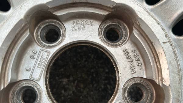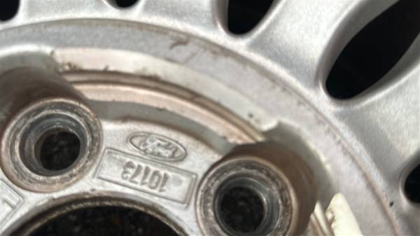 This listing is for one original factory FoMoCo aluminum wheel, measuring 15 by 6.5 inches, that came from a 1993 through 1997 Lincoln Town Car and is known for its "snowflake" pattern. The wheel features the versatile 5 on 4.5 inch lug pattern, which is the correct fitment for the Town Car and its platform siblings (Ford Crown Victoria and Mercury Grand Marquis), and also fits many other 5-lug Ford, Lincoln, and Mercury cars, as well as some Toyota pickups. The rim is in good working condition, having no bends, cracks, or significant damage, though it has a few minor scuffs and scratches. The tire is very old and must be replaced immediately, but it does hold air for use as a roller. This single, structurally sound wheel is perfect as a full-size spare or a replacement for a damaged rim.