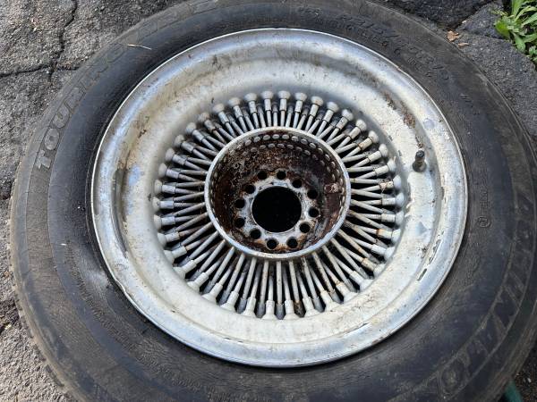 One 4 lug wire wheel 15 inch spoke rim 4 on 100mm, 108mm, 114.3mm - $50 (Montebello)