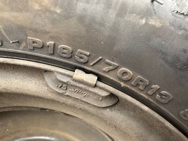 One Mopar small pattern 13 inch steel rim and old tire. 5 on 4 inches - $50 (Montebello)