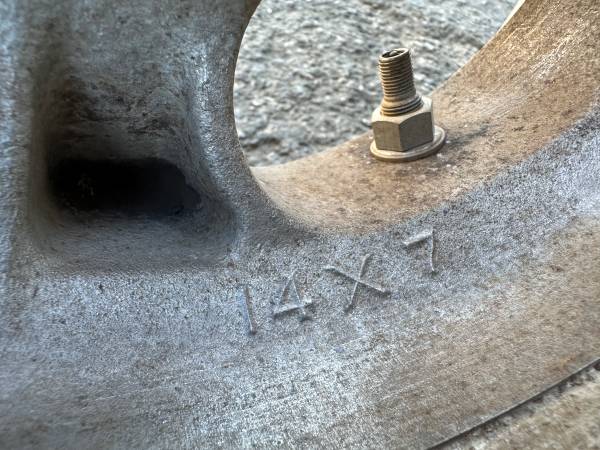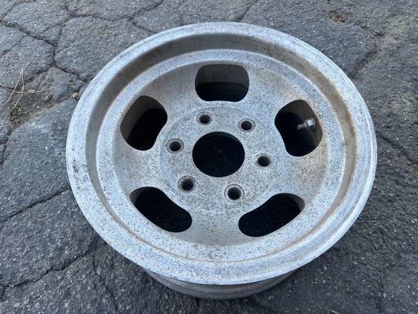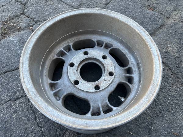 This is one 14 x7 inch aluminum rim from a classic Datsun truck. It’s a drag slot style rim in good condition. The lug pattern is 6 on 5.5 inches. This would be prefect for any c10 truck with drum brakes from 1970 and older. It will also fit most minitrucks including Nissan, datsun, Mitsubishi, Mazda, Chevy luv and Ford courier.