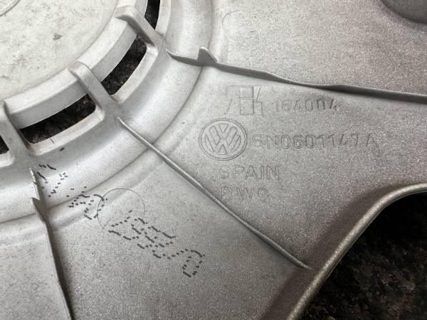 This is a matched set of four original Volkswagen hubcaps from a set of steel wheels with a 4 on 100mm lug pattern. They would be original for a 1997 through 1999 golf, Jetta, cabrio, or mk3. The center emblem stickers all came off, and I only have two of them. Otherwise they are in great condition with no cracks, broken tabs, or significant damage.